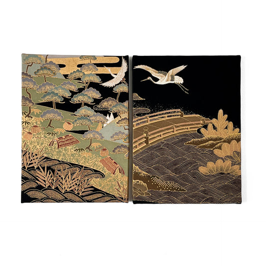 Discover the subtle beauty of Japan’s rich textile heritage with our Kimono Canvases - smaller, frameless pieces created from carefully selected antique kimono fabrics. Thoughtfully composed, each piece offers a glimpse into the intricate patterns, textures, and stories woven into traditional kimono, without the formality or cost of full-scale textile artworks.