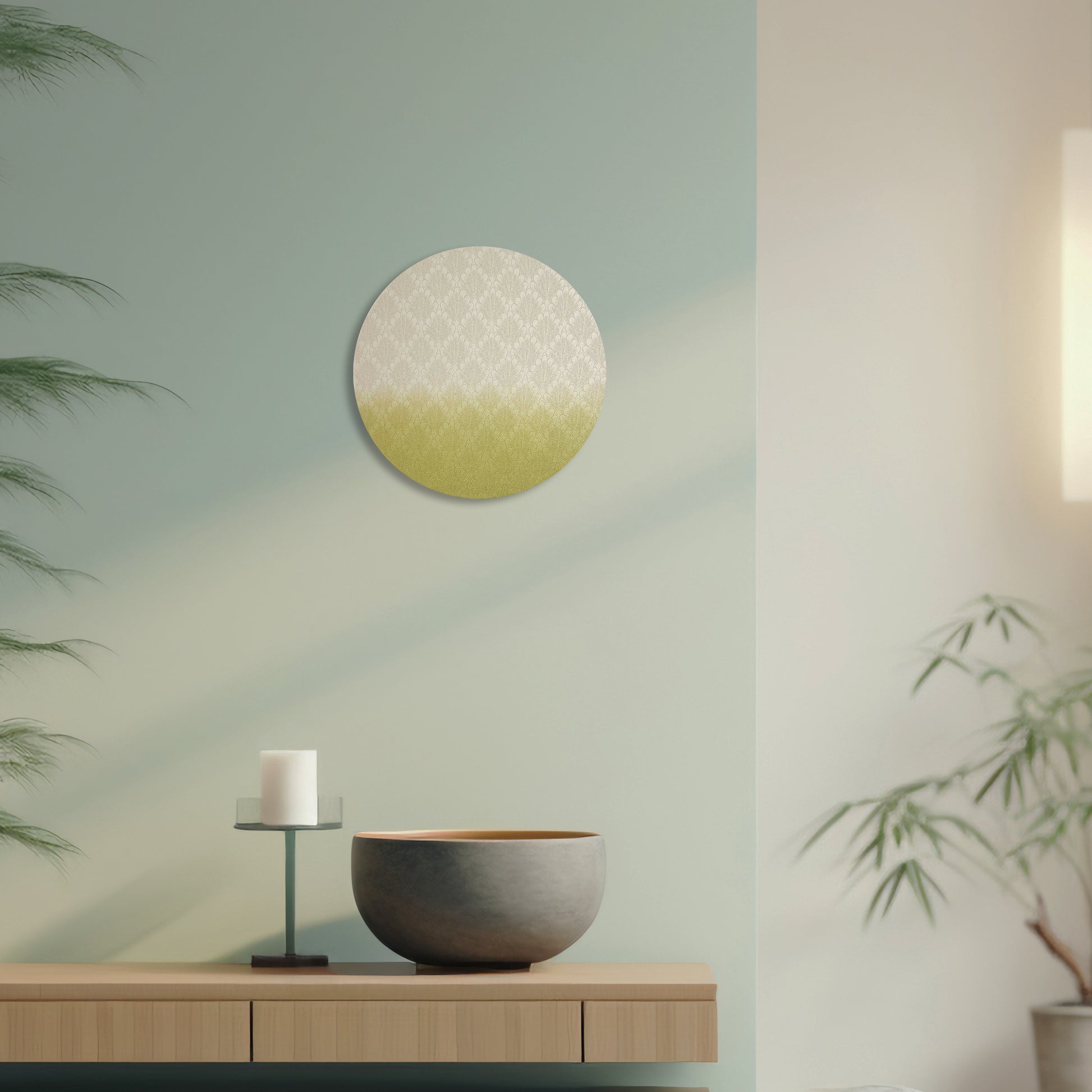 This unique Japandi-style circular canvas art seamlessly blends traditional Japanese kimono aesthetics with Scandinavian minimalism, creating a masterpiece that speaks to lovers of Japanese culture and contemporary interior design. This 20cm diameter wall art embodies the Japanese philosophy of "wabi-sabi" - finding beauty in imperfection and impermanence - translated into modern home decor.