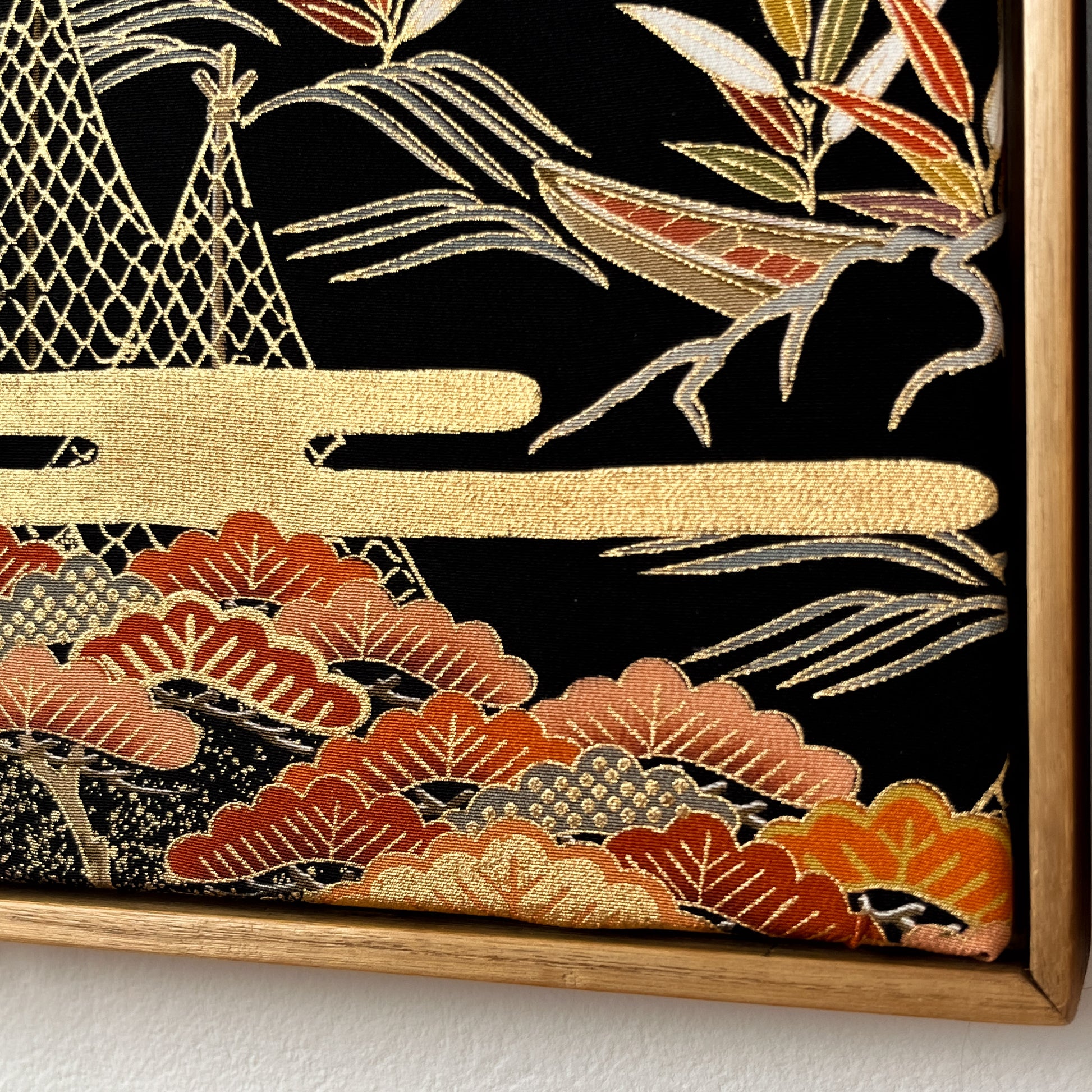 All artworks are created from authentic vintage and antique kimono textiles. Due to their age and history of use, minor imperfections or traces of use may be present. These elements are considered part of the textile’s history and character. Detailed images of any notable marks are provided in photo area when applicable. For cancellation and refund information, please refer to the policy section of the website.
