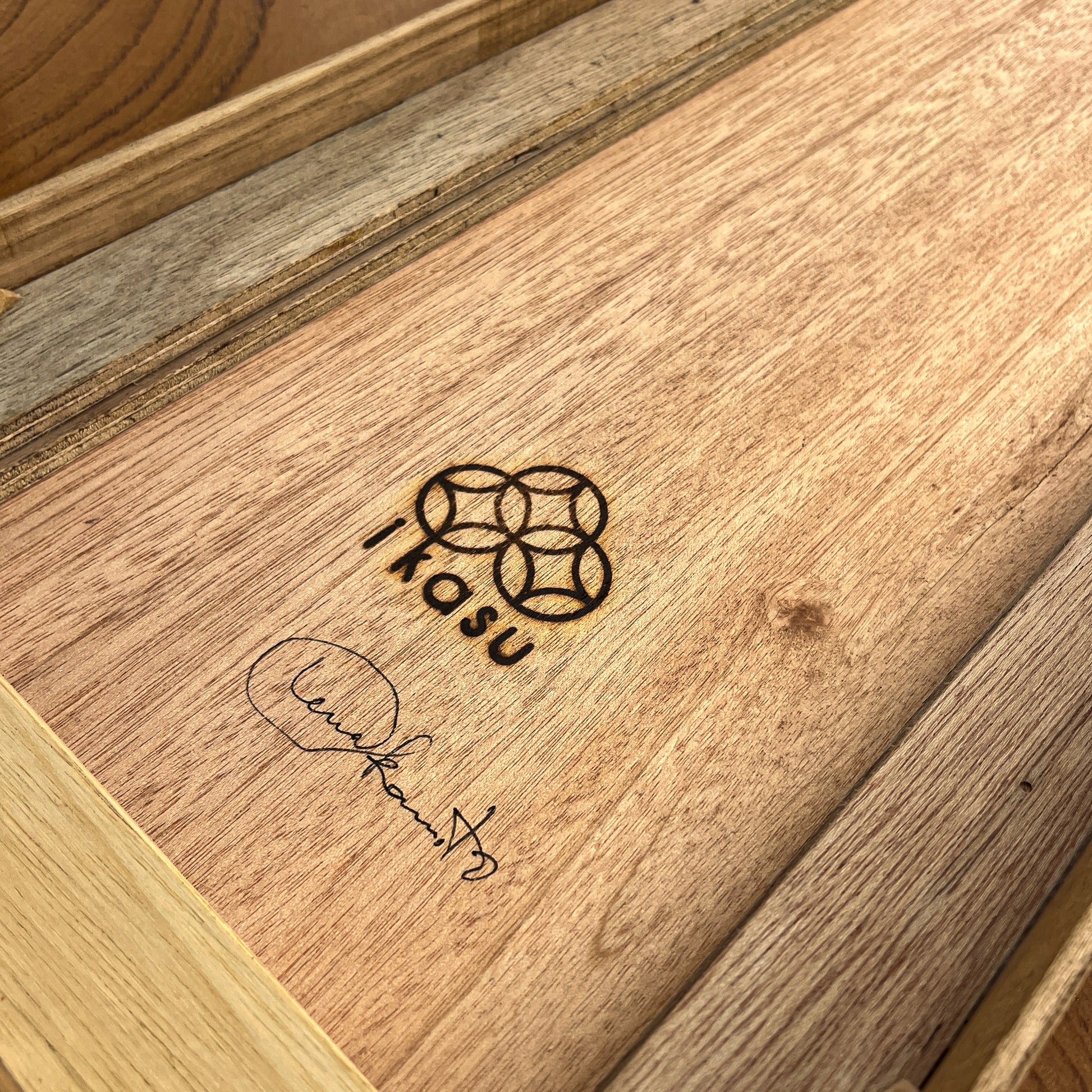 The artwork is framed in antique wood repurposed from traditional Japanese furniture - kiritansu, a chest-of-drawers for keeping kimono, preserving the authentic spirit of historical craftsmanship.