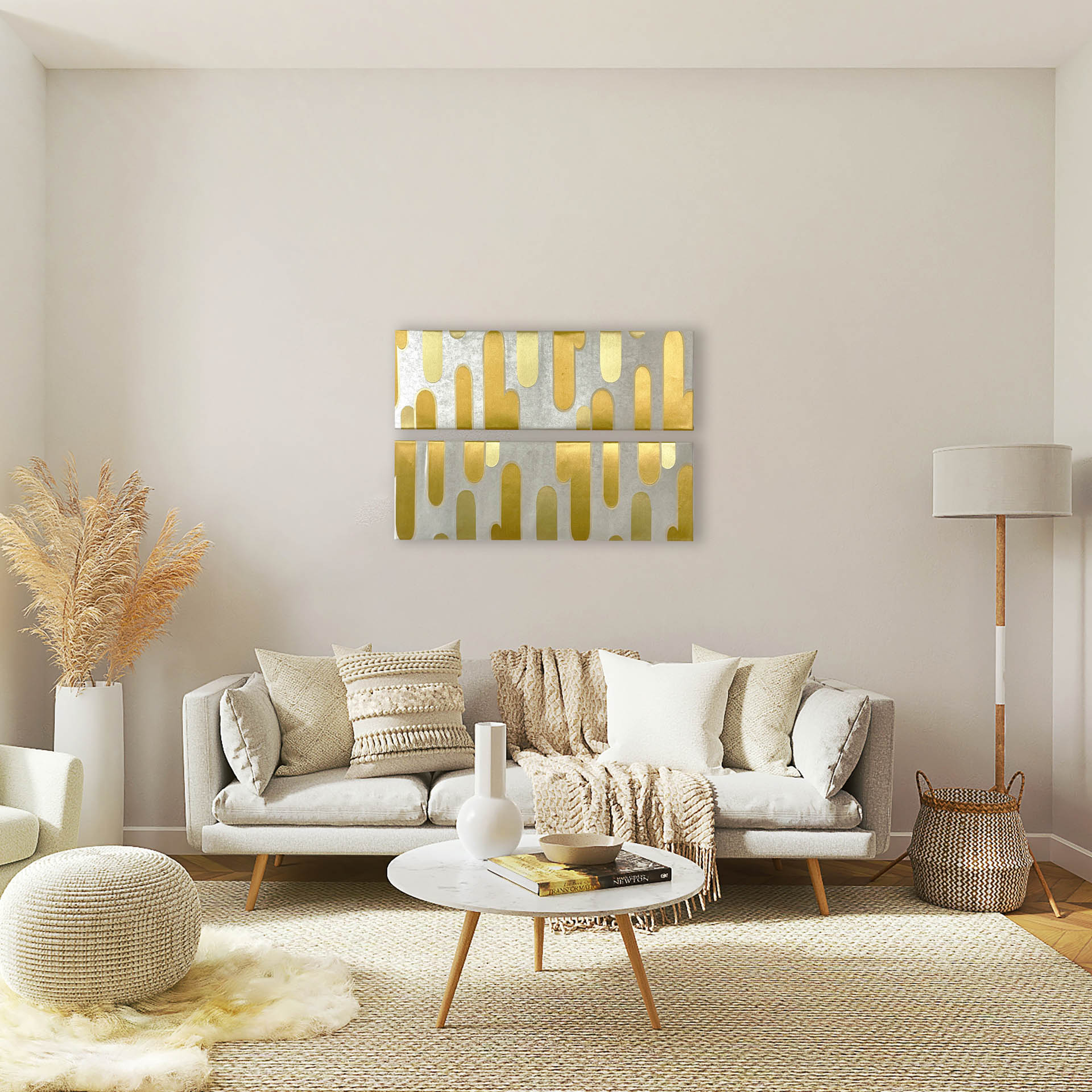 This set of canvases showcases a vertical Ekasumi haze pattern, showing a contemporary and artistic composition.