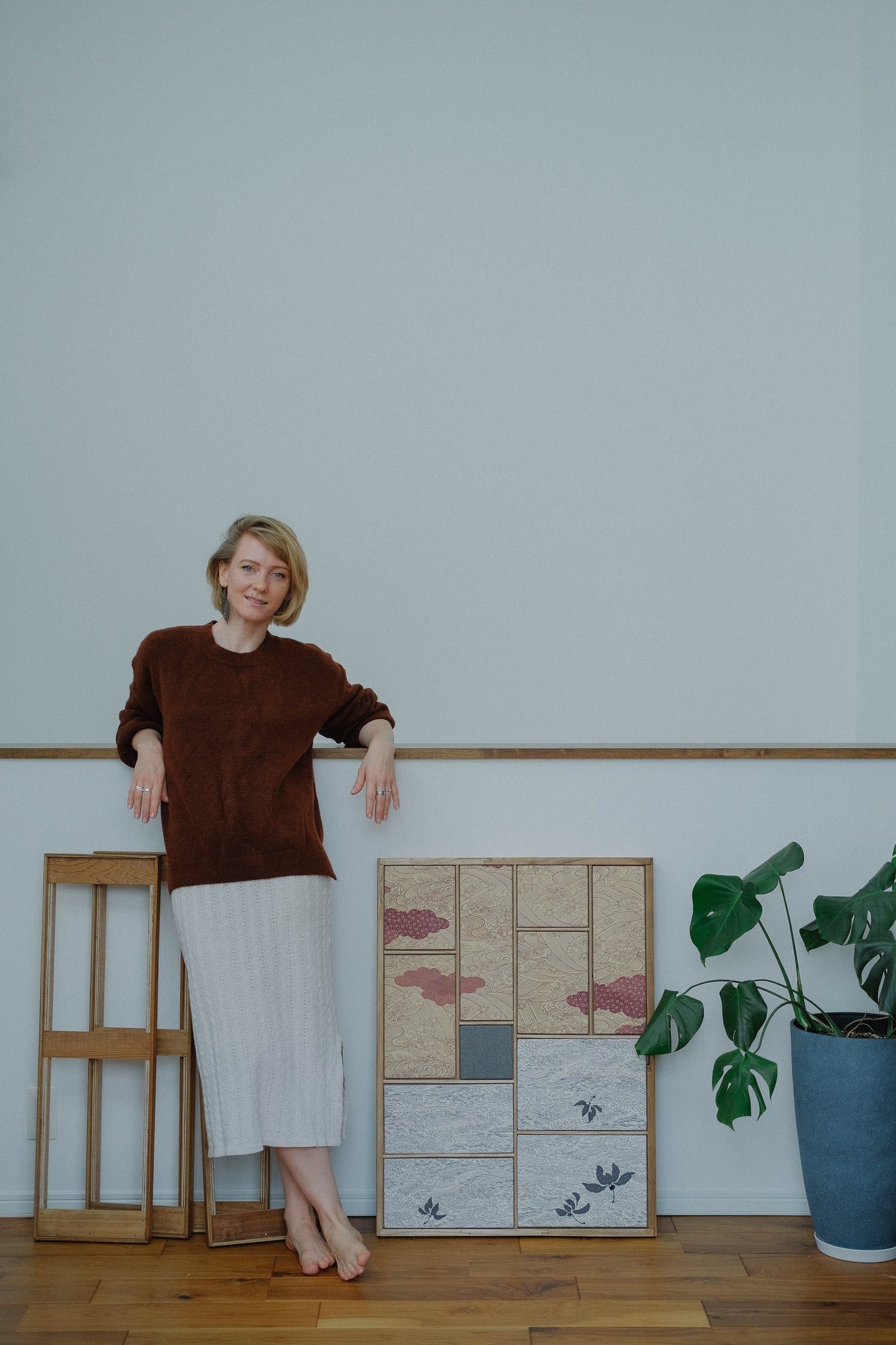 Drawing on a background in Japanese cultural studies and a master’s degree from the University of Tokyo, as well as her certification as a Kimono Meister, her practice is grounded in deep cultural fluency, personal introspection, and a quiet reverence for impermanence.