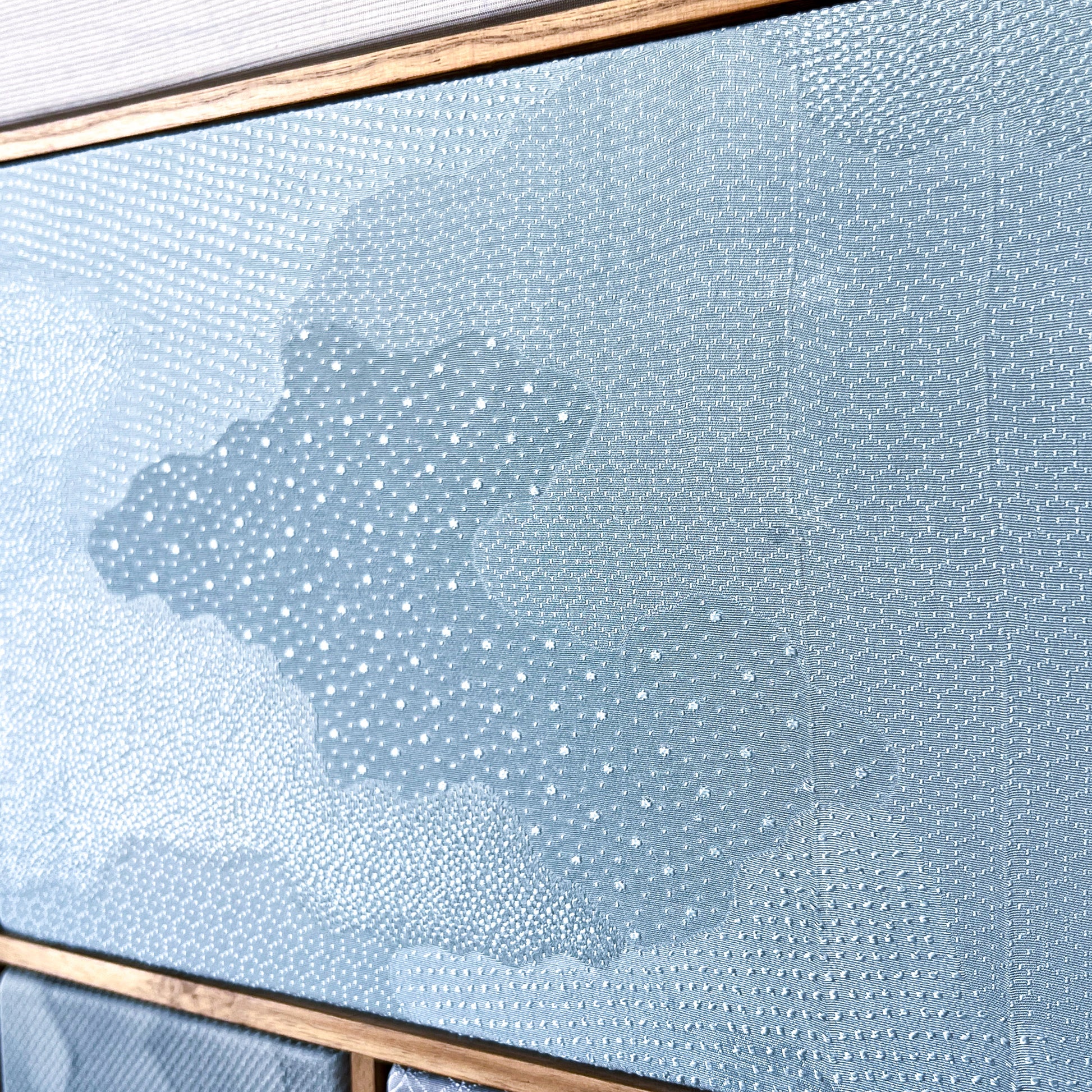 Unlike more narrative-driven pieces, this work does not present a single focal point. Instead, it invites the viewer into a slow, contemplative experience - where each section reveals a different texture, pattern, or shade of blue, like fragments of sky, water, and air.