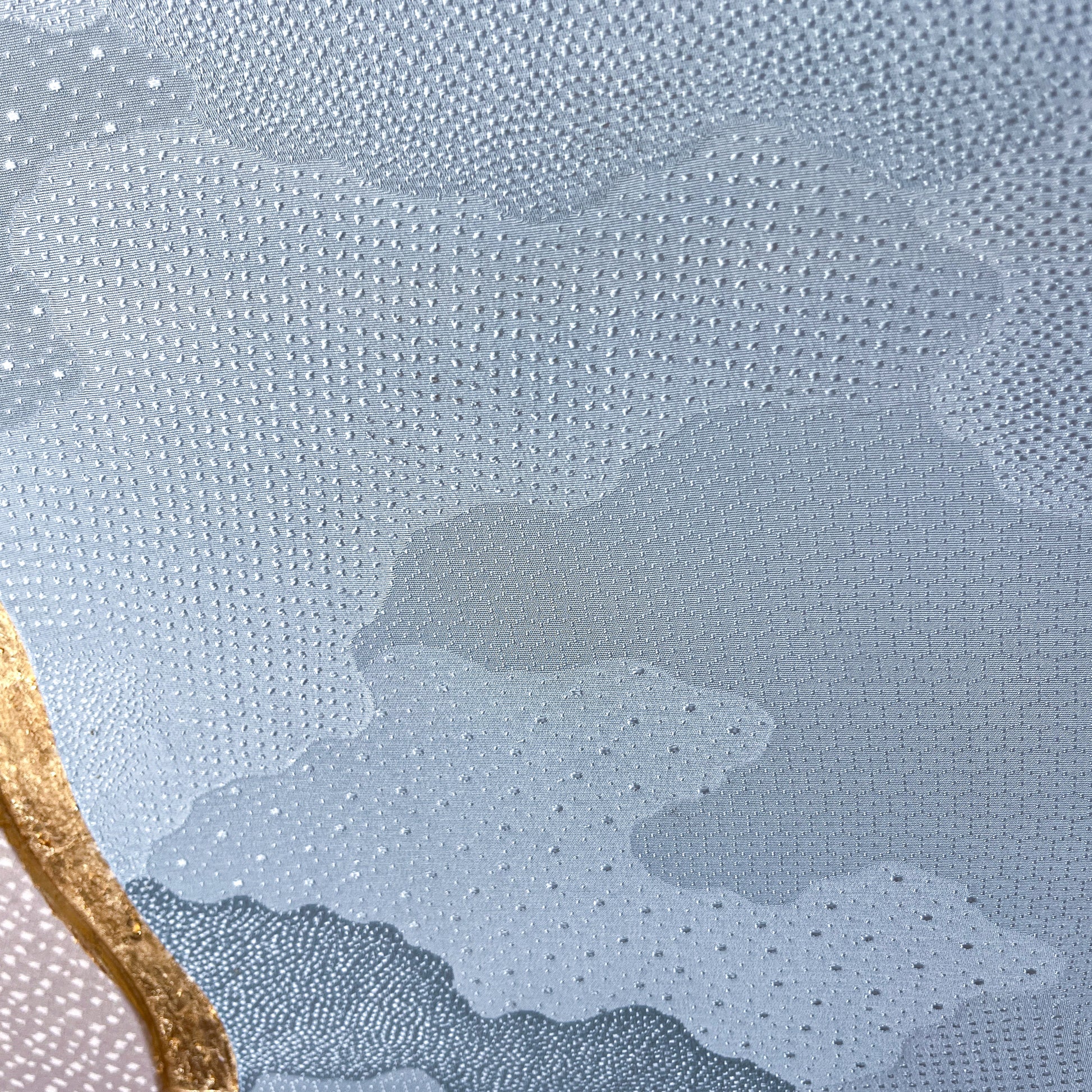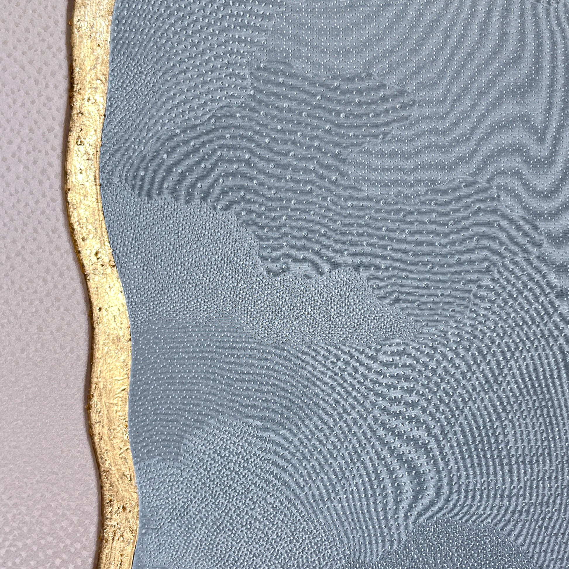 地紋 (jimon) is a subtle woven pattern embedded into the base fabric during the weaving process. Unlike printed or embroidered designs, jimon appears almost invisible at first glance and reveals itself gradually as light moves across the surface.