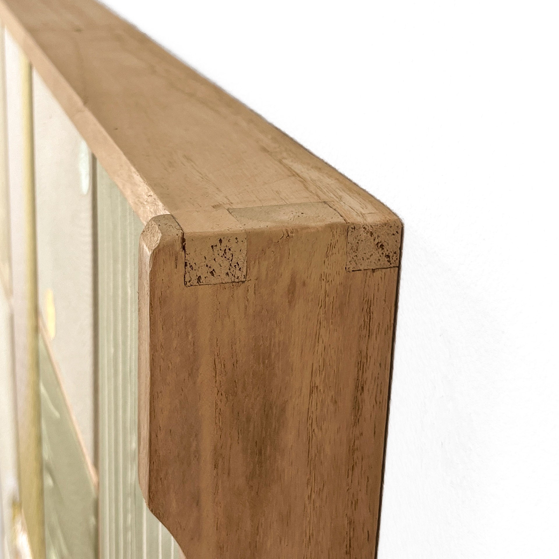 This work is inspired by the green color palette, and is framed in paulownia wood originally used for a kimono chest-of-drawers.